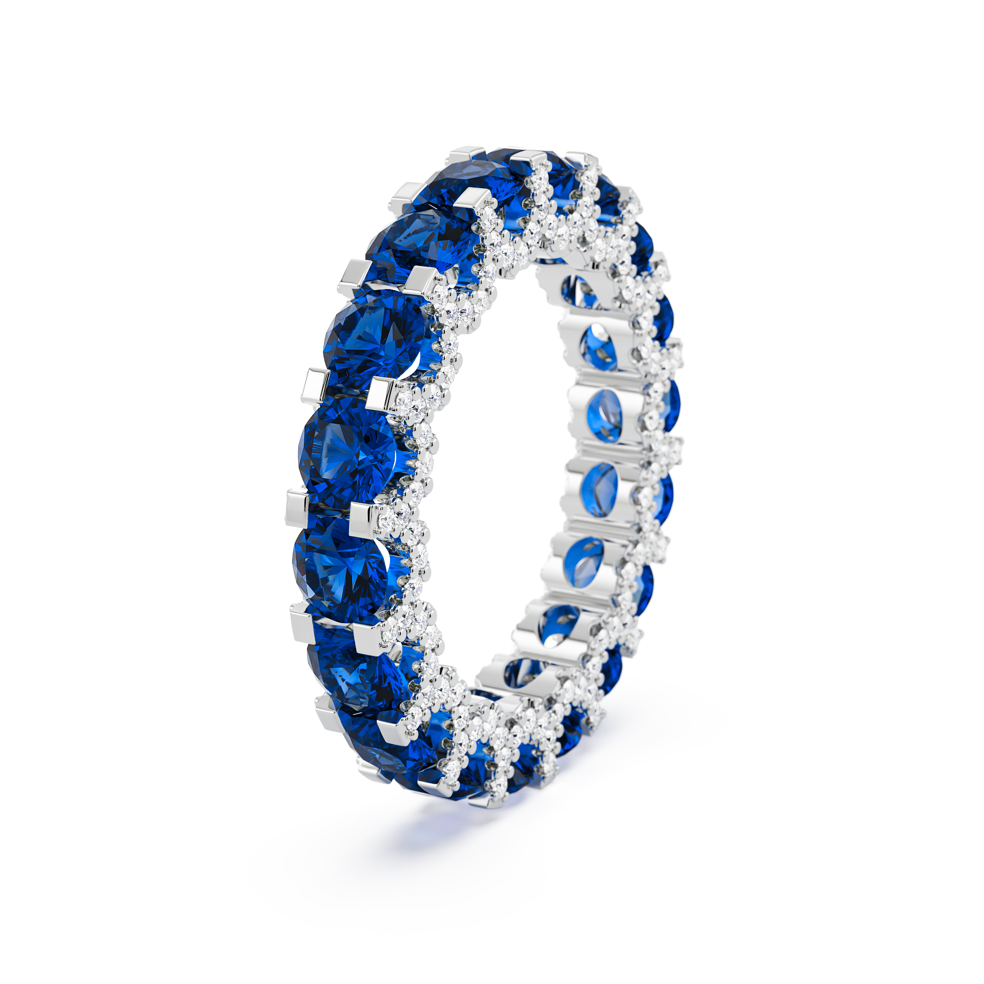Delicately crafted in 18k white gold, the Celeste Bleu ring features cafefully selected gem quality Blue Sapphire stones, offering a subtle sparkle that enhances any look.